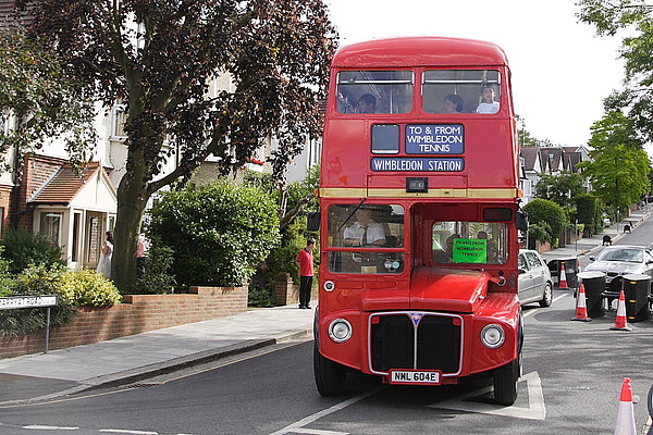溫布頓位於倫敦市郊,搭地鐵或火車到Wimbledon站,一出車站,就會看到有濃濃倫敦味的紅色雙層接駁巴士,往返車站及球場,計程車當然也少不了,且價錢不比公車貴多少!